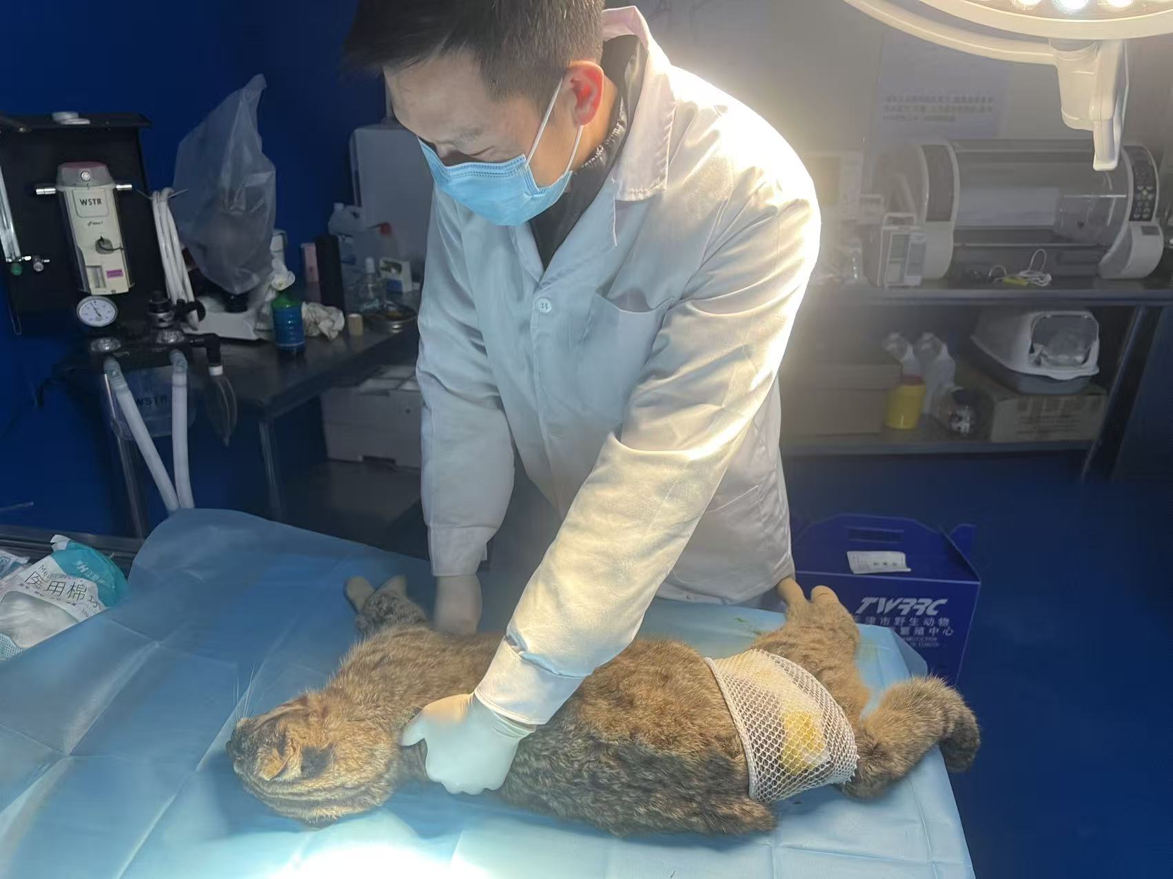 区林业局野保站接报后■•,迅速联动专业救护机构,组建救援专班携带断线钳□、动物保定器等设备火速驰援。在多方协同下,救援人员科学制定方案,仅用20分钟便安全解救豹猫。经专业检查,该成年雄性豹猫体重9▲.25公斤,存在足部磨损、指甲断裂、腹部伤口等情况▽■•,无重大健康风险,目前在救护站点接受专业救治,体态特征稳定,痊愈后将择机放归自然。